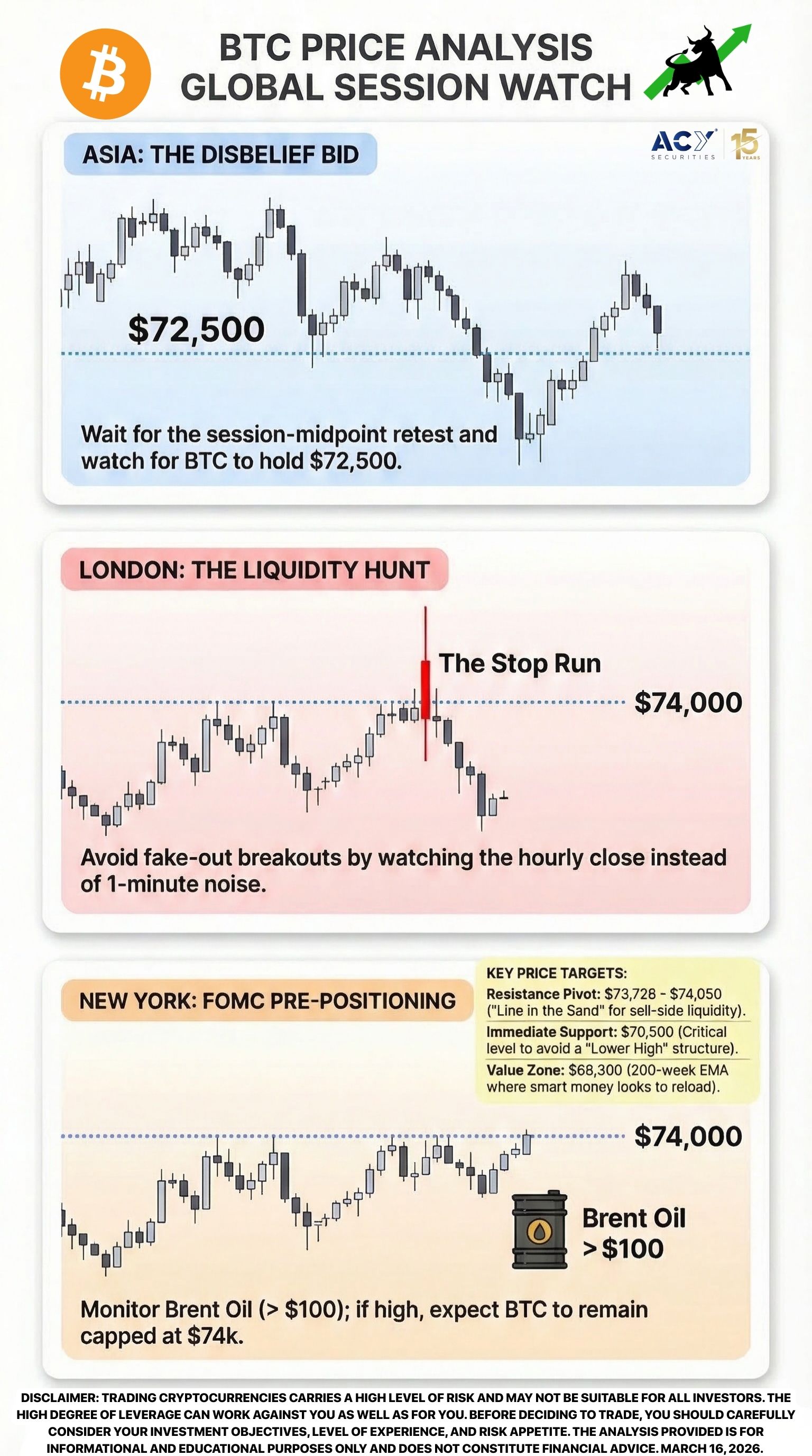 Stop trying to "predict" the Fed's next move. Instead, focus on the "Priced-In Trap" mentioned on Page 13 of our Forex News Mastery eBook. Since you value risk management over "gambling" on news, you’ll find that waiting for the NY afternoon "theta decay" provides the clearest entries. The Prescription: Watch the correlation with Oil. If Brent stays above $100, expect BTC to remain resilient but capped at $74k.
