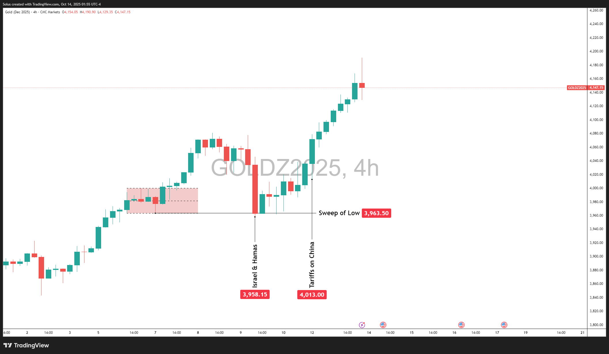 - Bearish Case: A sharp rebound in yields or resolution of the shutdown could cap the rally near $4,180–$4,150.