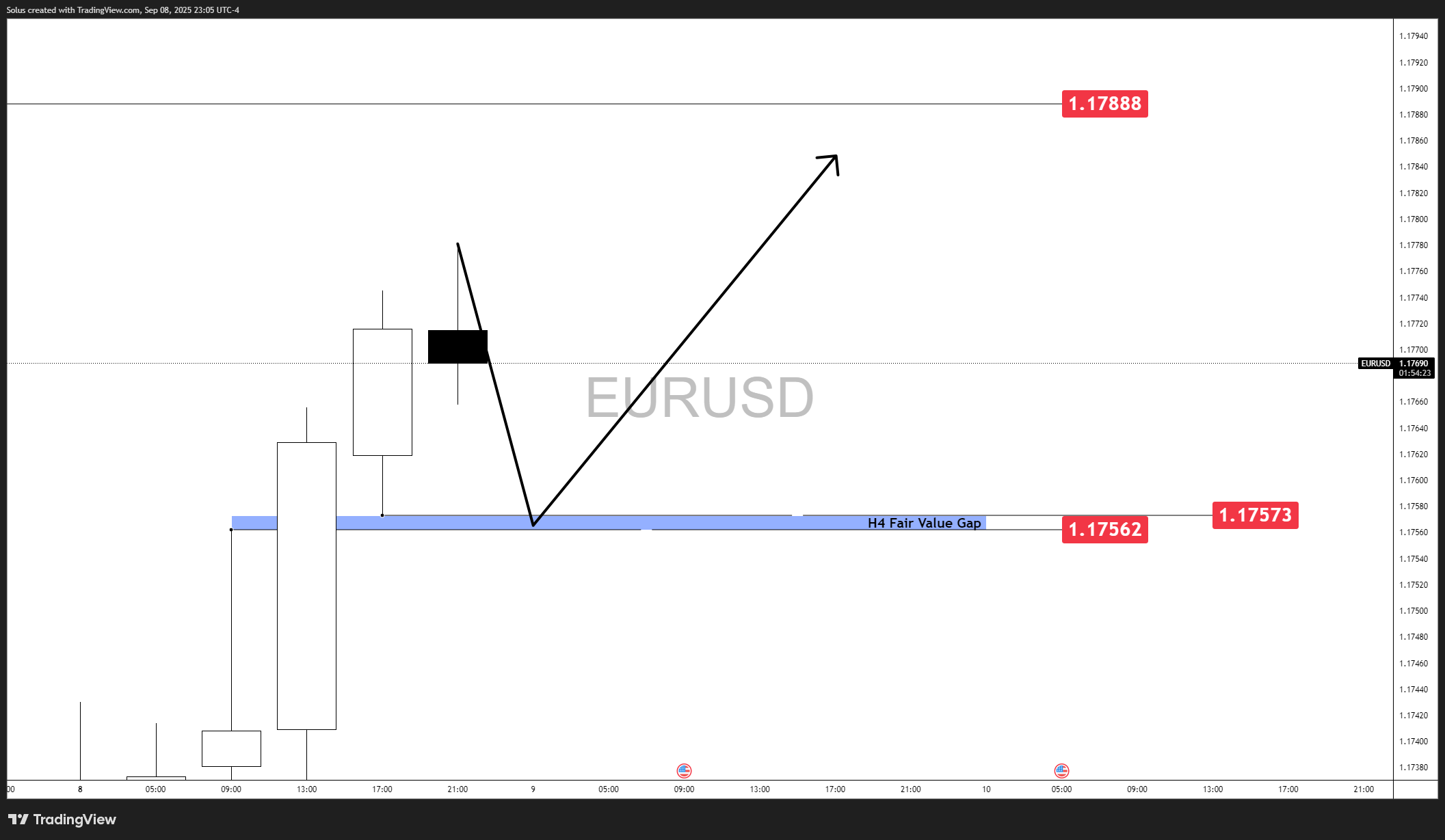 If EUR/USD respects the H4 Fair Value Gap (1.1756–1.1757) and buyers step in to defend the zone, the market structure would shift into a higher-low formation. Such a move would signal that the bullish order flow remains intact, paving the way for continuation higher. A decisive break above the 1.1788 intraday high would serve as confirmation, opening the path toward higher objectives.