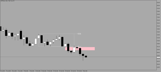 Oil has reacted to a Bearish Daily Fair Value Gap, aligning with the previous support-turned-resistance