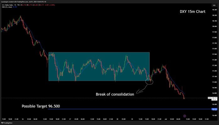 A: The greenback is weakening due to two major factors: growing uncertainty around US trade and fiscal policy, and signs that the US labour market is cooling. These concerns have pushed the DXY down near 97.00 and dragged 2-year Treasury yields to around 3.7%.