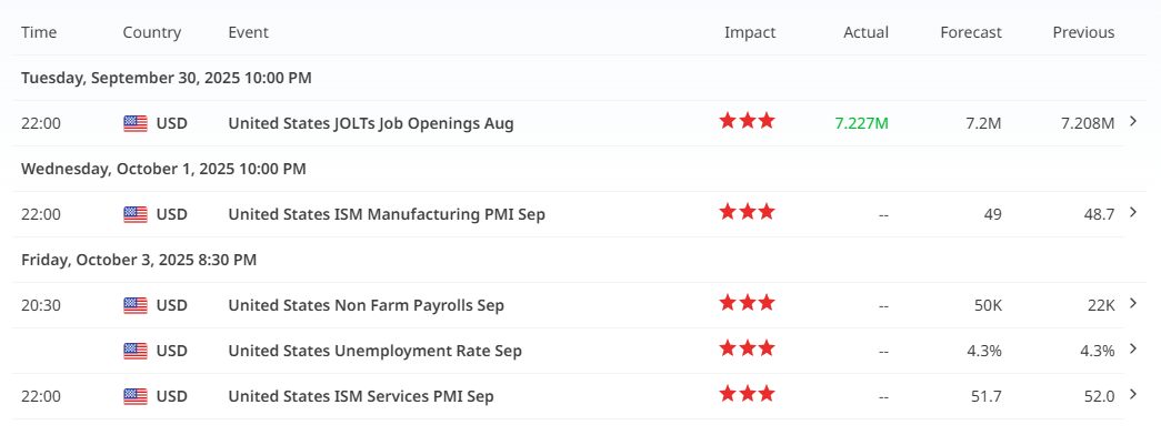 Overlaying this is the risk of a government shutdown. If the gridlock in Washington drags on, the publication of economic data, including NFP, could be disrupted. Even a short delay would rattle markets that depend on timely numbers to gauge Fed policy.