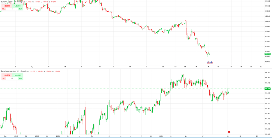 EURUSD and EURJPY H4 Chart