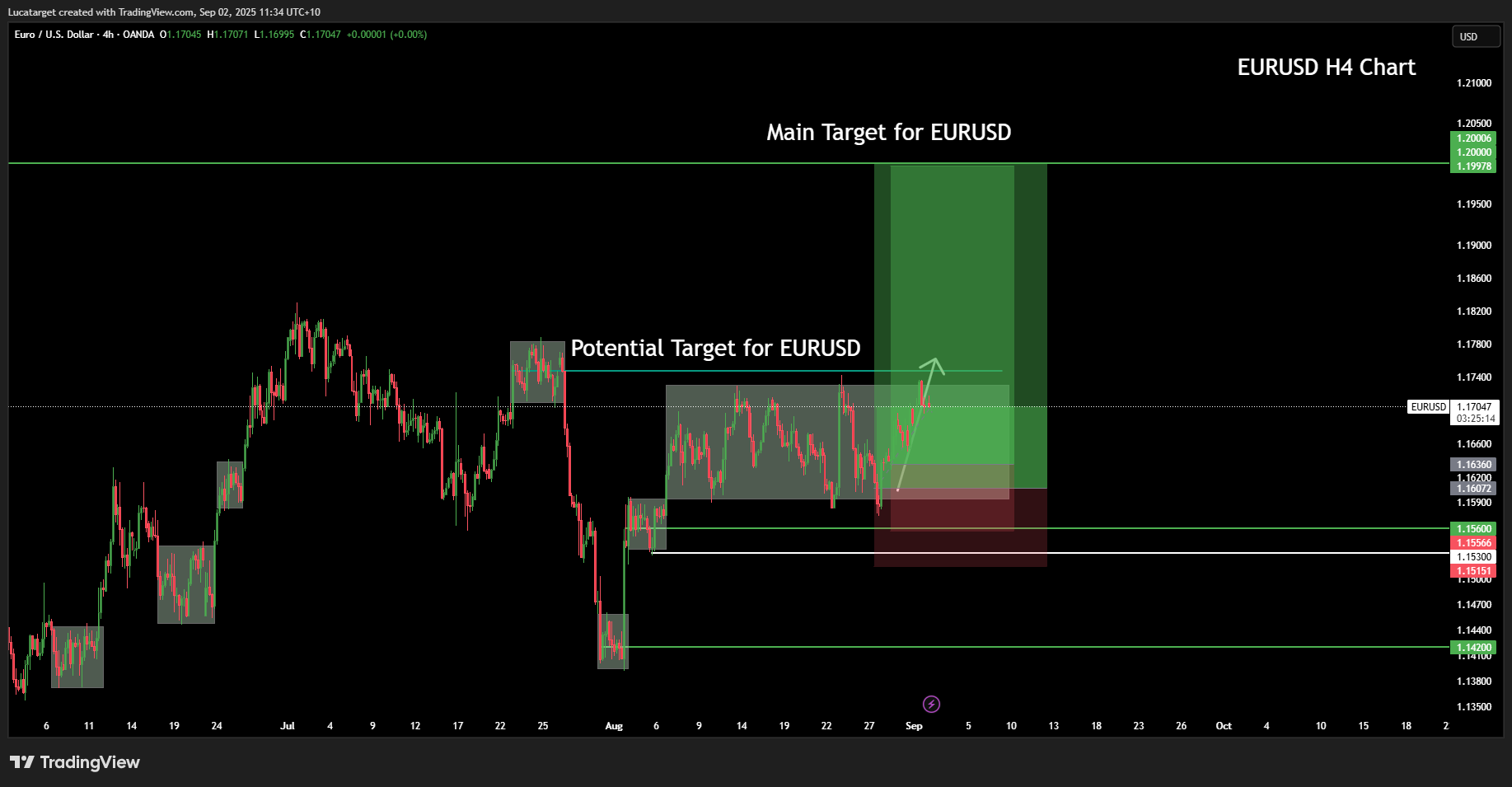 ACY Securities - Luca SantosAt the start of this week, I’ve been closely monitoring the U.S. dollar, and the tone in markets is one of persistent caution. The greenback has been losing ground, with EUR/USD trading above 1.17 and edging closer to its July highs.