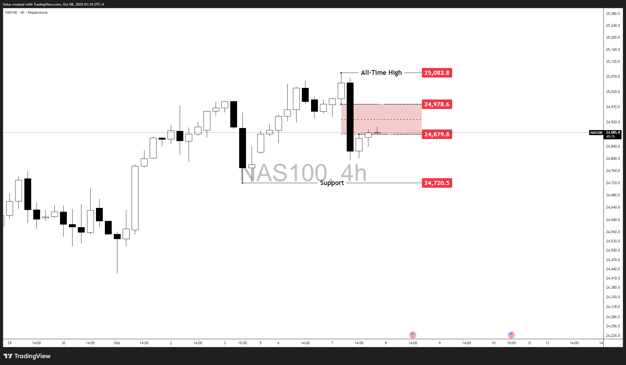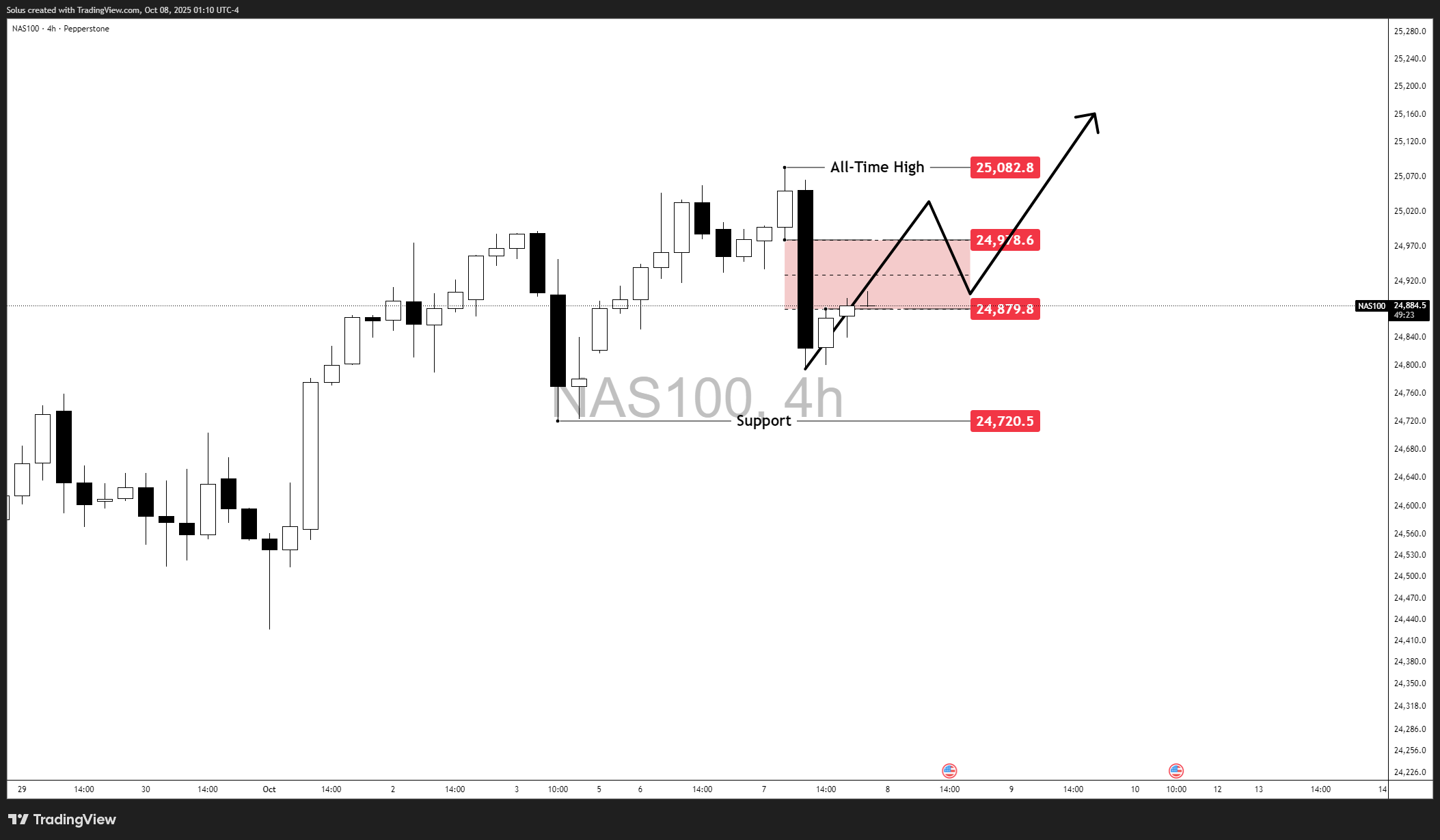 - Breaking through 25,080 (all-time high) would confirm a trend continuation targeting 25,200 – 25,250 in the next leg up.