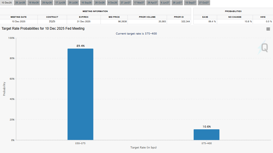 ACY Securities - Japer Osita- US Dollar slips as Fed rate-cut bets return, with markets now pricing an 89.4% probability of a December cut from 375–400 bps to 350–375 bps.