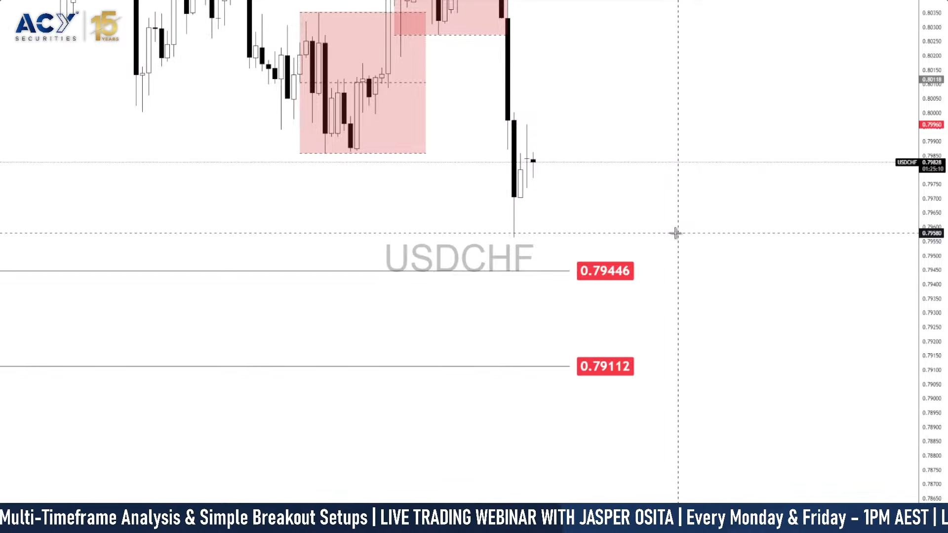 Following the NFP disappointment and annual revision, USD/CHF broke decisively lower, slicing through prior demand zones and extending downside momentum. Sellers took full control, driving price into the 0.791–0.795 liquidity pocket, which had been highlighted in the previous webinar as a key potential reaction zone.